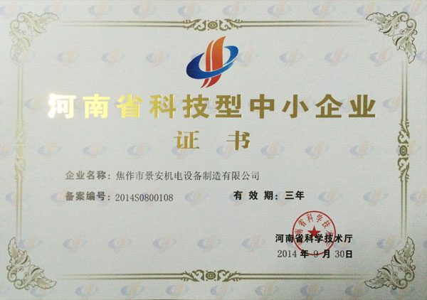 河南省科技型中小企業(yè)證書